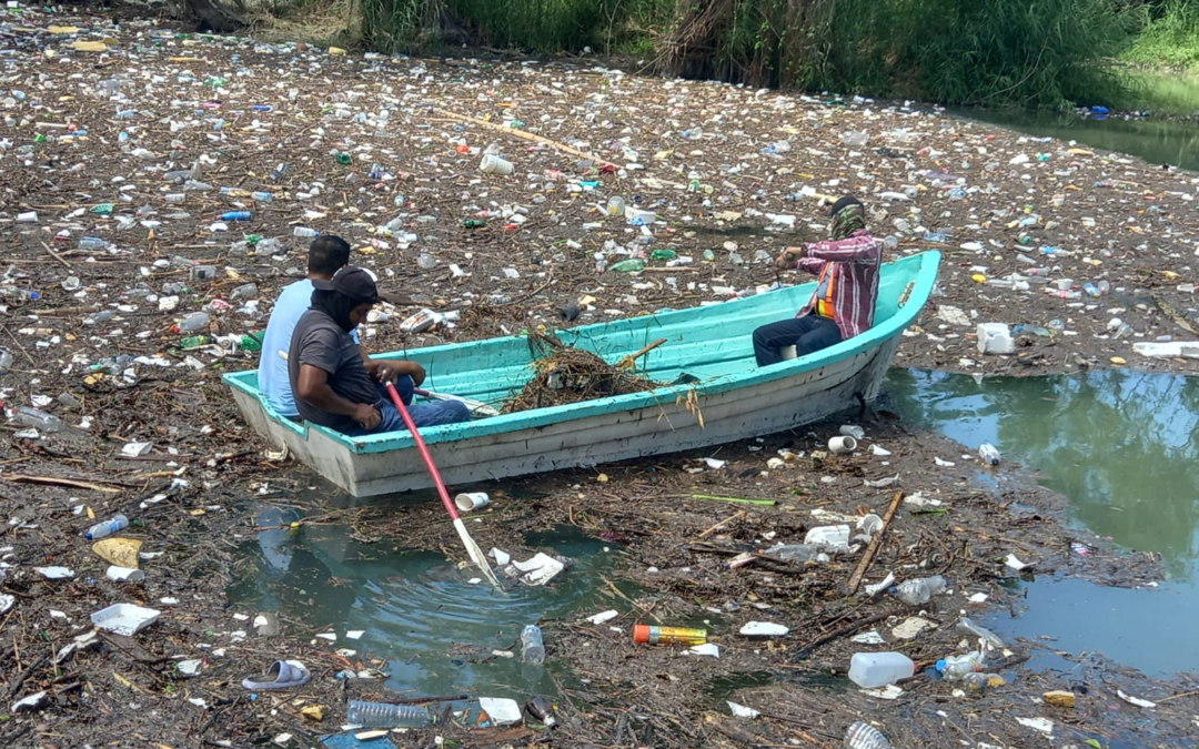 Entre los materiales retirados se encontraron residuos domésticos, botellas de PET, unicel, bolsas de plástico, así como materia orgánica, ramas y otros sólidos. Para las labores se emplearon trabajos desde la orilla y al interior del río, con apoyo de una lancha para acceder a áreas de difícil alcance.