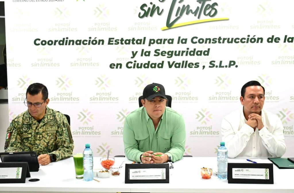 Durante la Mesa de Coordinación para la Construcción de la Paz, el mandatario estatal sostuvo un encuentro con los alcaldes de El Naranjo, Tamasopo y Ciudad Valles, a quienes exhortó a dignificar los salarios de los policías municipales como parte del fortalecimiento institucional de los cuerpos de seguridad. Asimismo, anunció un operativo especial junto con la Fiscalía General del Estado para prevenir y combatir el delito de extorsión en la región.